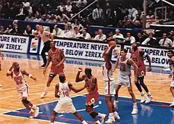 As a freshman under coach Dean Smith’s team-oriented system, Jordan was named ACC Freshman of the Year after averaging 13.4 points per game on 53.4% shooting—ranking 10th in scoring and sixth in field goal percentage in the conference.[43][44] He made the game-winning jump shot in the 1982 NCAA Championship game against Georgetown, which was led by future NBA rival Patrick Ewing.[45] Jordan later described this shot as the major turning point in his basketball career.[46][47] During his sophomore and junior seasons, Jordan consistently ranked among the ACC's elite, finishing either 1st or 2nd in both total points and points per game, while also placing in the top 10 in field goal percentage and free throw percentage.[48][49] In his three seasons with the Tar Heels, Jordan averaged 17.7 ppg on 54.0% shooting and added 5.0 rpg and 1.8 apg.[14]