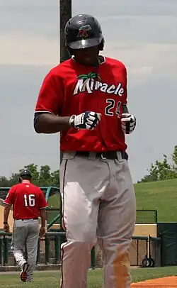 Miguel Sanó was born in San Pedro de Macorís, Dominican Republic, to a poor Haitian family.[3][4] He chose to play baseball with the name Sanó, his mother's family name, rather than his father's, which is Jean, out of respect to the Dominican Republic.[5] He was discovered at a young age, and worked with scouts to develop his talent.[3] In early 2009, Major League Baseball conducted an age investigation, a prerequisite for every player signed in Latin America, that confirmed Sanó's identity but could not verify his exact age.[6] Sanó claimed to be 16 years old, but there had been rumors in the Dominican Republic that he was older.[7][8]