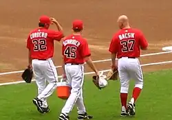 Chad Cordero, Chris Schroder and Bacsik (from left) with the Washington Nationals in 2008