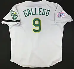 While playing with the Yankees from 1992 to 1994, Gallego was the last player to wear the uniform number 2 prior to the Yankees' Hall of Fame shortstop, Derek Jeter.[2] Upon his return to the Oakland A's in 1987, Gallego refused to give up uniform number 9 that Reggie Jackson had worn previously with the A's, forcing Jackson to wear number 44 for his final season.[3]