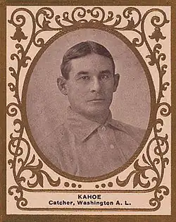Michael Joseph Kahoe (September 3, 1873 – May 14, 1949) was an American catcher in Major League Baseball. Kahoe was one of the first catchers to wear shin guards.[1] Kahoe was born on September 3, 1873, in Yellow Springs, Ohio, and made his Major League Baseball debut on September 22, 1895, with the Cincinnati Reds.[2]