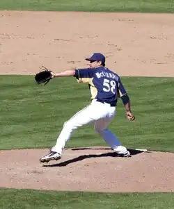 McClendon was drafted by the Brewers in the 10th round of the 2006 amateur entry draft out of Seminole State College of Florida in Sanford, FL after two seasons under head coach Mike Nicholson. In 2006, he made his professional debut for the Rookie League Helena Brewers. In 2007, he was promoted to the Class A West Virginia Power, and then the Class A-Advanced Brevard County Manatees. McClendon played the entire 2008 season with the Manatees. In 2009, he was promoted to the Double-A Huntsville Stars. He played the majority of the 2010 season with Huntsville and the Triple-A Nashville Sounds. On August 12, he was called up to Milwaukee to replace reliever LaTroy Hawkins who was placed on the disabled list.[1] He made his major league debut on August 14, pitching three scoreless innings against the Colorado Rockies, becoming the first ever Brewers pitcher to start a career with at least three perfect innings.[2] He was sent outright to Triple-A Nashville Sounds on August 25, 2012. He became a free agent following the season on November 2.