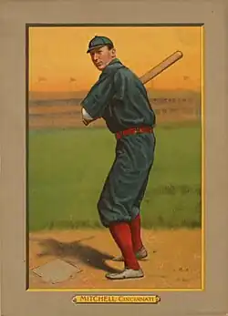 Michael Francis Mitchell (December 12, 1879 – July 16, 1961) was an outfielder in Major League Baseball from 1907 to 1914. He played for the Cincinnati Reds, Chicago Cubs, Pittsburgh Pirates, and Washington Senators. Known for his powerful throwing arm, Mitchell was also a decent hitter who led the National League in triples twice. He stood at 6' 1" and weighed 185 lbs.[1]