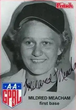 Mildred Meacham (May 5, 1924 – January 7, 2017) was an infielder who played in the All-American Girls Professional Baseball League (AAGPBL). Listed at 5' 8", 160 lb., Meacham batted and threw right handed. She was nicknamed ″Meach″.[1]