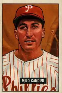 Mario Cain "Milo" Candini (August 3, 1917 – March 17, 1998) was an American professional baseball pitcher. A 6 ft (1.83 m), 187 lb (85 kg) right-hander, he played all or part of eight seasons in Major League Baseball (MLB) for the Washington Senators (1943–44; 1946–49) and Philadelphia Phillies (1950–51). After Candini's big league career, he continued to pitch in the Pacific Coast League until 1957, primarily for the Sacramento Solons. All told, Candini's professional career lasted 20 seasons.