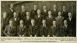 The team had a period of prolonged success in the 1920s and 1930s, led by Walter Johnson, as well as fellow Hall-of-Famers Bucky Harris, Goose Goslin, Sam Rice, Heinie Manush, and Joe Cronin.[19] In particular, a rejuvenated Johnson rebounded in 1924 to win 23 games with the help of his catcher, Muddy Ruel, as the Senators won the American League pennant for the first time in its history.[20] The Senators then faced John McGraw's heavily favored New York Giants in the 1924 World Series.[21] The two teams traded wins back and forth with three games of the first six being decided by one run.[22][23] In the deciding 7th game, the Senators were trailing the Giants 3–1 in the 8th inning when Bucky Harris hit a routine ground ball to third that hit a pebble and took a bad hop over Giants third baseman Freddie Lindstrom. Two runners scored on the play, tying the score at three.[24] An aging Walter Johnson came in to pitch the ninth inning and held the Giants scoreless into extra innings. In the bottom of the twelfth inning, Ruel hit a high, foul ball directly over home plate.[25] The Giants' catcher, Hank Gowdy, dropped his protective mask to field the ball but, failing to toss the mask aside, stumbled over it and dropped the ball, thus giving Ruel another chance to bat.[25] On the next pitch, Ruel hit a double; he proceeded to score the winning run when Earl McNeely hit a ground ball that took another bad hop over Lindstrom's head.[24][25] This would mark the only World Series triumph for the franchise during their 60-year tenure in Washington.