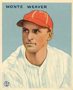 Montie Morton Weaver (professionally known as Monte Weaver[1]) (June 15, 1906 – June 14, 1994) was a Major League Baseball player who played as a pitcher from 1931 to 1939.