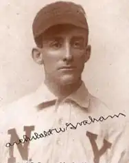 Graham started the 1905 season with the Binghamton Bingoes in the Class B New York State League. He was purchased by the Giants, who had won the National League pennant the previous year (and had refused to play the Boston Americans in a World Series), reporting to the team on May 23, 1905.[3] On June 29, the Giants were the visiting team against the Brooklyn Superbas at Washington Park.[4] At the conclusion of the eighth inning, Graham replaced right fielder George Browne. In the top of the ninth inning, Graham was on deck when Claude Elliott flied out, resulting in the third and final out. Graham played the bottom of the ninth in right field, recording no putouts or assists. That game turned out to be his only appearance in the major leagues.[5]