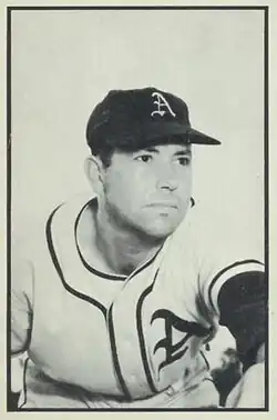 However, Martin was able to return to baseball in 1946, the first full peacetime season. Now a member of the Brooklyn farm system, he had his first MLB trial with the pennant-bound 1949 Dodgers, appearing in ten games, including four starts. After spending 1950 back in the minor leagues, he was selected by the Philadelphia Athletics in the Rule 5 draft and had a sparkling 1951 campaign, winning 11 of 15 decisions (.733) for a sixth-place team that played at only a .455 pace over the entire season. Along the way, Martin threw his only big-league shutout, a five-hitter against the Detroit Tigers at Briggs Stadium on July 19.[3] He became more of a relief specialist as his big-league career progressed.