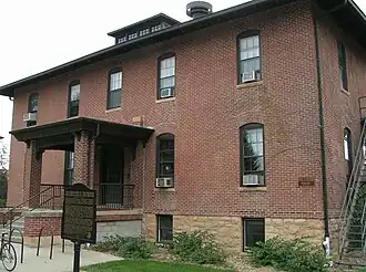 Two buildings survive from the Morris Industrial School for Indians. A wood-frame house built for the school superintendent in 1905 was moved off-campus in 1937 and now stands at 540 West 5th Street.[20] The other, an 1899 boys' dormitory, remains in its original location. The Morris Industrial School for Indians Dormitory was listed on the National Register of Historic Places in 1984 for having local significance in the themes of education, politics/government, and social history.[21] It was nominated for its association with late-19th-century federal Indian policy, which the Dawes Act of 1887 shifted from isolating native people on reservations to a practice of cultural assimilation.[2] When the campus became the West Central School of Agriculture, the building continued to serve as a dormitory for a few years but was converted to the Music Hall for most of the school's 50-year existence. When a historic district of surviving West Central School buildings was added to the National Register in 2002, the 1899 dormitory/music hall was listed as a contributing property.[22] It now serves as the University of Minnesota Morris's Multi-Ethnic Resource Center.[23]