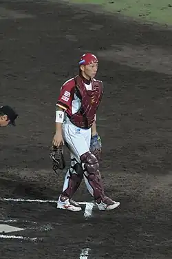 Motohiro Shima (嶋 基宏, Shima Motohiro; born December 13, 1984 in Kaizu, Gifu) is a Japanese former professional baseball catcher. He played in Nippon Professional Baseball (NPB) for the Tohoku Rakuten Golden Eagles and Tokyo Yakult Swallows from 2007 to 2022. He is currently a coach for the Chunichi Dragons.