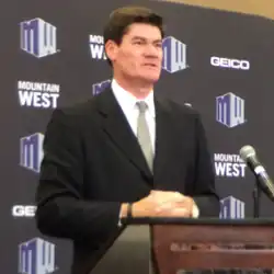 Craig Thompson was hired as the inaugural commissioner of the Mountain West on October 15, 1998, and served until his retirement on December 31, 2022. Before joining the MW, he had been commissioner of the Sun Belt Conference.
