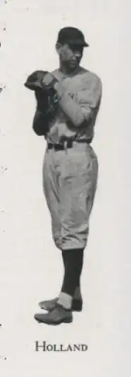 Holland pitched for the Virginia Cavaliers baseball team and was signed by the Cincinnati Reds in July 1926.[4] He made three appearances in relief, giving up only one run in 6.2 innings.[5] He was released by the Reds and signed by the Giants prior to the 1927 season.[6] He appeared in two games for New York, pitching two scoreless innings and earning one win.[5] He was released on May 14, 1927.[7] He finished the year with the Clarksburg Generals of the Middle Atlantic League, compiling a 9–10 record and a 3.61 earned run average over 147 innings.[5]