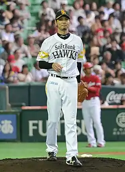 Nagisa Arakaki (新垣 渚, Arakaki Nagisa; born May 9, 1980 in Naha, Okinawa) is a former Japanese professional baseball player. He is currently with the Tokyo Yakult Swallows in Japan's Nippon Professional Baseball. Despite having one of the best fastballs and sliders of anyone in the league, Arakaki has battled control problems and injuries throughout his career. In 2007, Arakaki set the NPB record for most wild pitches in a season with 21, breaking Kazuhisa Ishii's record.