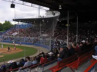The stadium was first home to the Vancouver Capilanos in the early 1950s and later attracted the Oakland Oaks, who became the Vancouver Mounties of the Triple-A classification Pacific Coast League (PCL) from 1956 to 1962 and 1965 through 1969. The PCL returned to Vancouver in 1978 with the Vancouver Canadians, owned by Harry Ornest. He purchased most of the primary assets of Sick's Stadium in Seattle and shipped them north for use at Nat Bailey.[5] The Canadians stayed in Vancouver through the 1999 season, then relocated south to Sacramento, California, as the Sacramento River Cats. The following season, a second incarnation of the Canadians began playing in the Class A Short Season Northwest League. In 2021, they were elevated to the High-A classification.