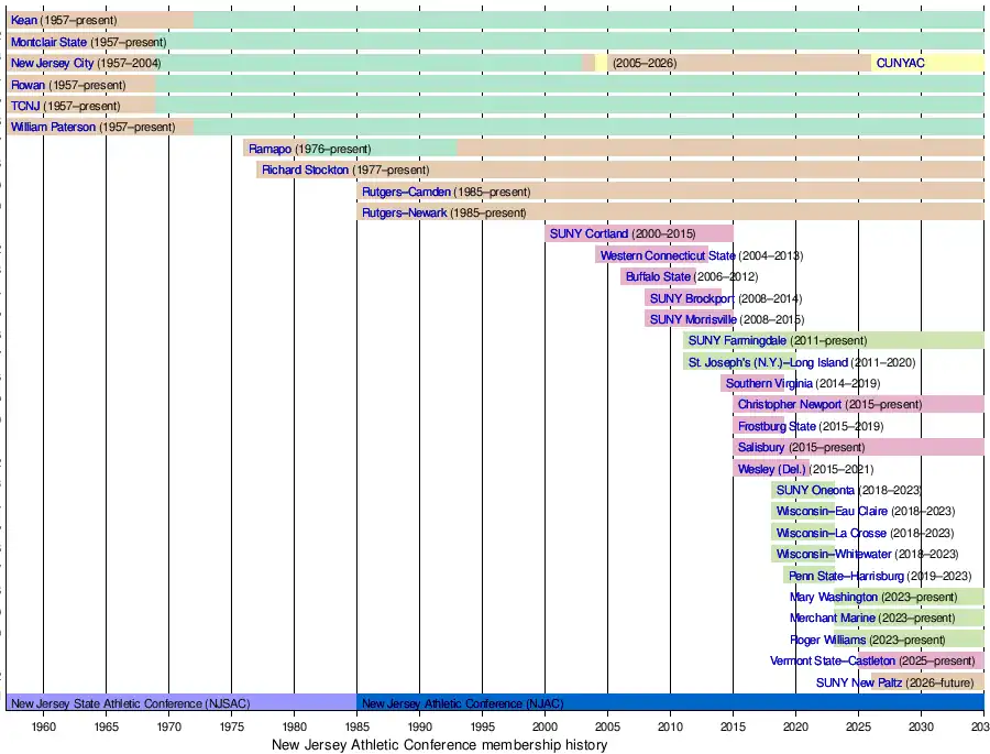 • The State University of New York at New Paltz (a.k.a. SUNY New Paltz) will join the NJAC, beginning the 2026–27 academic year; thus becoming the NJAC's first-ever full member located outside of the state of New Jersey.