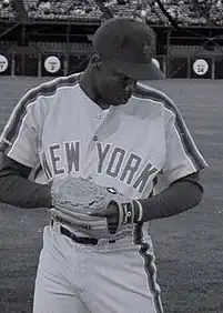 This was seen as the end for Jefferies in New York as he would be traded to the Kansas City Royals in the offseason. The season ended on a high note, however, as David Cone pitched a one-hit shutout against the Phillies at Veterans Stadium, in which he struck out 19 batters, tying the National League regulation game record (first set by former Met Tom Seaver).[51] With all of the personal problems swirling around the Mets after the 1986 championship, the Mets tried to rebuild using experienced superstars. They picked up Eddie Murray for over $3 million, Bobby Bonilla for over $6 million.[52][53] They also traded McReynolds and Jefferies for one-time World Series hero Bret Saberhagen and his $3 million contract, along with signing veteran free agent pitcher Frank Tanana for $1.5 million. The rebuilding was supported by the slogan, "Hardball Is Back".[54]
