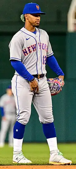 On October 30, 2020, Steve Cohen became the majority owner of the Mets, owning 95% of the team, making him the current richest owner in baseball.[126] He bought the team from the Wilpon family for $2.4 billion, with the Wilpons keeping the remaining 5%. On January 7, 2021, the Mets acquired pitcher Carlos Carrasco and All-Star shortstop Francisco Lindor in a trade with the Cleveland Indians.[127] On March 31, Lindor and the Mets agreed to a 10-year extension worth $341 million.[128] At the trade deadline, the Mets acquired All-Star infielder & World Series champion Javier Báez in trade with the Chicago Cubs.[129] The Mets finished third place in the NL East with an overall record of 77–85.[130][131]