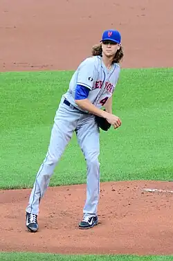 The end of the decade also coincided with David Wright's retirement,[118] Jacob deGrom being awarded two consecutive Cy Young Awards (including for the 2018 season when the pitcher finished the year with a 1.70 ERA)[119] and first-baseman Pete Alonso winning the 2019 Rookie of the Year Award and finishing the season with a major-league-leading 53 home runs, the most by any rookie in MLB history.[120] On October 3, 2019, the Mets fired manager Mickey Callaway.[121] On November 1, 2019, the Mets named Carlos Beltrán as the new manager replacing Callaway.[122]