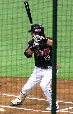 Aoki has developed more power with each successive season and has now established himself as a legitimate middle-of-the-order threat that can pull the ball as well as hit for a high average (.333 career batting average as of May 13, 2009).[55] He is known to be slightly unusual in that he has several different batting stances in his repertoire. While most players shape their mechanics to perfection, Aoki does not hesitate to switch from one stance to another when he runs into hitless stretches (though he holds his bat much more upright than he did earlier in his career). He has attested to the importance of lower body movement to his hitting in interviews. According to Statcast, Aoki's current batting stance positions his head closest to the assumed strikezone of any active player.