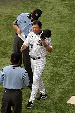 Norifumi Nishimura (西村 徳文, Nishimura Norifumi; born January 9, 1960 in Kushima, Miyazaki) is a former Nippon Professional Baseball player and current manager. Nishimura spent the entirety of his 16-year playing career with the Chiba Lotte Marines. After retiring, he coached for the team until being named the successor to former Marines-manager Bobby Valentine in late 2009.