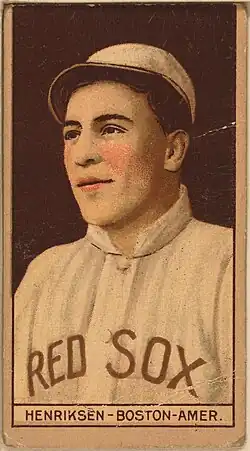 Olaf Henriksen (April 26, 1888 – October 17, 1962) was a Danish born Major League Baseball outfielder who remains to date the only Danish-born person ever to play in the major leagues. He played seven seasons (1911–17) for the Boston Red Sox as a teammate of Hall of Famers Babe Ruth and Tris Speaker, among others, and he played a role in three World Series victories, namely in 1912, 1915 and 1916.