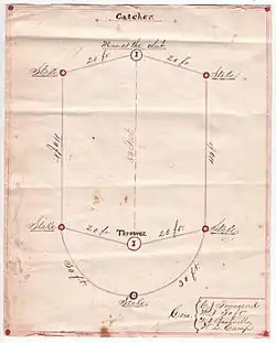 - ^ In the diagram there is a type-over that makes the first letter of the name of the game hard to distinguish. The caption provided by the NYPL interprets the note as saying Your Old Cat, but it is likely this is actually Four Old Cat.