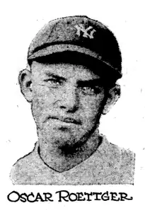 Oscar Frederick Louis Roettger (February 19, 1900 – July 4, 1986) was an American baseball player whose 19-year active career was augmented by brief service as a minor-league manager and over 35 years as the liaison between the Rawlings Sporting Goods Company and professional baseball.[1] In his abbreviated Major League career, he appeared in 37 total games as a pitcher and first baseman for the New York Yankees (1923–1924), Brooklyn Robins (1927) and Philadelphia Athletics (1932). He threw and batted right-handed, stood 6 feet (1.8 m) tall and weighed 170 pounds (77 kg).