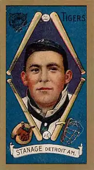 A native of Tulare, California, he began his baseball career with the Stockton Millers. He was signed by the St. Louis Cardinals in 1906 and promptly traded to the Reds for whom he had only one plate appearance before returning to the minor leagues. In August 1908, Stanage was purchased by the Tigers and remained with them from 1909 to 1920. He appeared in 1,096 major league games, 1,074 as a catcher, and compiled a .236 batting average and .284 on-base percentage. In 1911, he set an American League record with 212 assists as a catcher, a record that still stands. He led the American League in assists by a catcher three times (1911, 1912, and 1914) and threw out 830 base runners in the 1910s, more than any other American League catcher. He ranks among the all-time career leaders at catcher with 1,381 assists (14th), 931 runners caught stealing (14th), and 1,297 stolen bases allowed (10th).
