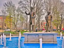 - ^ the “Railsplitter”, bronze statues of; l, “The Little Giant” forms the centerpiece of the beautifully; Square, Scaped. "Attractions".
