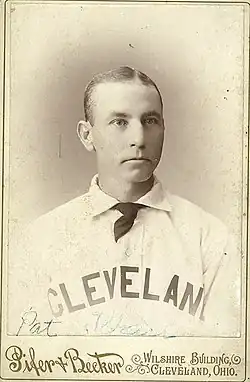 Patsy started his professional baseball career with the Western League's St. Joseph Reds in 1886. The following season, while playing for Denver of the WL, he had a .424 batting average in 94 games.[2] Tebeau made his major league debut with the National League's Chicago White Stockings in September of that year. In 20 games with Chicago, he batted .162.[1] He then played in the Western Association in 1888.[2] In 1889, Tebeau joined the NL's Cleveland Spiders and batted .282.[1] The following year, he was a player-manager for the Cleveland Infants of the Players' League. In 1891, Tebeau returned to the Spiders and was a player-manager for the team until 1898.[3] His lowest batting average with the Spiders was .244 in 1892, and his highest was .329 in 1893.[1] The Spiders never finished a full season in first place in the National League, but Tebeau's team benefited from the season structure in 1892, 1895 and 1896; the 1892 season was a split-season that found Cleveland as the winner of the second half and the right to play in the World's Championship Series (the pre-modern postseason before the World Series). They would compete in the next rendition of postseason play in the League with the Temple Cup that matched the first and second place teams, and Cleveland would win once.[3]