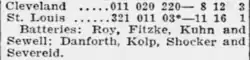 - ^ a b c d e f "St. Louis Browns 11, Cleveland Indians 8 (1)". Retrosheet. September 1, 1924. Retrieved August 4, 2020.