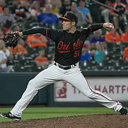 On April 14, 2017, Fry was traded to the Baltimore Orioles in exchange for international signing bonus allocations.[7] He was assigned to the Triple-A Norfolk Tides upon his acquisition. On June 4, Fry was outrighted off of the 40-man roster.[8] He split time between the Double-A Bowie Baysox and Norfolk in 2017, and in 60+1⁄3 total innings pitched between Tacoma, Norfolk, and Bowie, Fry was 3–3 with a 4.33 ERA and 72 strikeouts.[9] Fry was assigned to Norfolk to begin the 2018 season.
