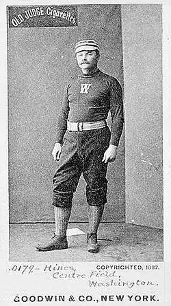 Hines started his professional career with the National Association Washington Nationals at the age of seventeen in 1872. In eleven games, he batted .224 with eleven hits. The following year, he played one last year with Washington (with the Blue Legs) and batted .331 in 39 games.