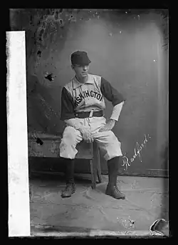 Since the National League did not play on Sundays, Radford's strict observation of the Sabbath did not hamper his baseball career. However, after one season with the Kansas City Cowboys, Radford signed with the New York Metropolitans of the American Association. The American Association did play on Sundays, causing Radford to come up with clever excuses to miss Sunday games.[1] The rest of Radford's career was spent as a journeyman, never spending more than one season with the same team. He spent the 1890 season with the Cleveland Infants of the ill-fated Players league. The usually light-hitting Radford had one of his best seasons with Cleveland, batting .292 and stealing 25 bases. However, the Players league folded after one season, and Radford was on the move again. He had a homecoming of sorts, playing one season for the Boston Reds of the American Association before joining the Washington Senators of the National league in 1892. The Reds had been a member of the Players League, but they were granted the right to transfer to the American Association, despite objections raised by the National League's Beaneaters. Radford finished his stint in the majors with the Senators. Though he remained a base stealing threat (Radford swiped 65 bases for the Reds in 1891), he struggled at the plate, and never again achieved as high an average as in the players league. After he was released in 1894, Radford finished his career in the minor leagues before retiring in 1897 at age 35 as a member of the Hartford Bluebirds.