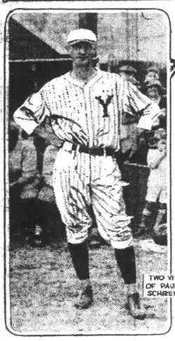 Schreiber graduated from Duval High School in Jacksonville, Florida in 1918. For two years he played amateur baseball in Jacksonville before signing with the Brooklyn Robins organization in 1919.[1] From 1920 to 1921, Schreiber played for minor league team Lakeland in the Florida State League. In 1922, he played for the Saginaw Aces of the Michigan–Ontario League. Schreiber joined the major league Brooklyn Robins in 1923, although he had appeared in one game for them the year prior.[1] Schreiber pitched in ten games of the 1923 season, however his major league career was shortened in mid-1924 by an arm injury.[2] Schreiber pitched for the Scranton Miners baseball team of the New York–Pennsylvania League in 1926. He went 14–9 with a 2.74 ERA in 68 games played.[3]