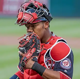 In 2010, the Nationals signed Severino for a $55,000 signing bonus as a catcher. He debuted in 2011 for the Gulf Coast Nationals of the Rookie-level Gulf Coast League (GCL), where he struggled to gain the trust of his pitchers due to his youth and inability to understand English. He began to learn English, and worked on his catching development.[1] After repeating the GCL in 2012,[2] Severino played for the Hagerstown Suns of the Class A South Atlantic League (SAL) in 2013, where he was the team's youngest player.[3] He batted .241, but threw out 40% of basestealers, and was named a SAL all-star.[1][4] In 2014, Severino played for the Potomac Nationals of the Class A-Advanced Carolina League, where the average player was three years older than him.[1] After the season, the Nationals assigned Severino to the Arizona Fall League.[5]