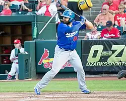 - Pitcher Caleb Clay was promoted to the major leagues by the Los Angeles Angels on August 10, 2014.[105] He went unused out of the bullpen and was optioned to Triple–A on August 12.[106] He was later removed from the 40–man roster and stepped away from baseball following the 2015 season.[107][108]