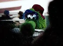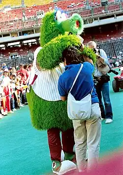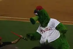The Phillie Phanatic is the official mascot for the Philadelphia Phillies Major League Baseball team. He is a large, furry, green creature with an extendable tongue. He performs various routines to entertain fans during baseball games at Citizens Bank Park and makes public relation and goodwill appearances for the Phillies. The Phanatic is widely acknowledged as the best ballpark mascot,[1][2][3] and one of the most recognizable mascots in North American sports.[4]