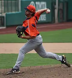 After the season, he transferred to the University of South Florida for his remaining collegiate eligibility.[3] As a junior in 2016, he was 5-5 with a 4.15 ERA and 95 strikeouts (5th in the conference) in 95.1 innings.[7] As a senior, Sanders was 6–2 with a 2.78 ERA and 109 strikeouts (2nd in the conference) in 97 innings over 16 starts, with 4.36 strikeouts per walk (2nd).[8][1] He was named 2017 All-American Athletic Conference Second Team.[1]