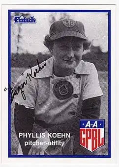 Phyllis C. Koehn [″Sugar″] (September 15, 1922 – May 28, 2007) was an American pitcher and utility who played from 1943 through 1950 for six different teams of the All-American Girls Professional Baseball League (AAGPBL). Listed at 5' 5", 120 lb., Koehn batted and threw right-handed. She was born in Madison, Wisconsin.[1][2]