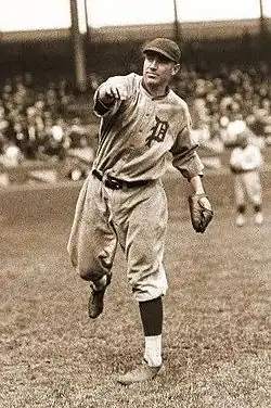 In a 17-year major league career, Traynor played in 1,941 games, accumulating 2,416 hits in 7,559 at bats for a .320 career batting average along with 58 home runs, 1,273 runs batted in and an on-base percentage of .362.[1] He retired with a .946 fielding percentage.[1] Traynor reached a high of 12 home runs in 1923. He hit more doubles and triples, with 371 doubles and 164 triples lifetime and leading the league in triples in 1923, with 19.[1] He hit over .300 ten times and had over 100 runs batted in (RBI) in a season seven times.[1] Traynor accumulated 6 five-hit games and 39 four-hit games in his MLB career.[24] His seven seasons with more than 100 RBI is tied for second among major league third basemen, behind Mike Schmidt's 9 seasons.[25][26] He had 208 hits in 1923, the last Pirate infielder with 200 or more hits until shortstop Jack Wilson, who had 201 hits in 2004. Traynor struck out only 278 times in his career.[1]