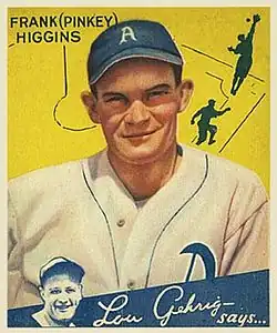 Higgins was born in Red Oak, Texas. He was nicknamed "Pinky" as a baby, and according to some reports detested it. Alternatively, he was called by either of his given names. He signed some autographs as Frank Higgins, but was predominantly known as Mike, especially later in his career. Higgins graduated from W. H. Adamson High School in Dallas, where he played on the 1926 state championship runner-up team. He attended the University of Texas at Austin before beginning his career with the Philadelphia Athletics on June 25, 1930. After only 24 at bats that year, he did not play in the majors again until 1933, when he began to play full-time for the A's. In his rookie season of 1933, he batted .314 with 13 home runs and 99 RBIs.[1] He hit for the cycle on August 6 in a 12–8 win over the Washington Senators.[2] The A's of that year finished third in the American League.[3]
