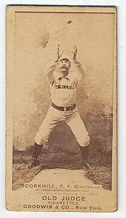 Corkhill was born in Parkesburg, Pennsylvania on April 11, 1858. He began his Major League career in the American Association with the Cincinnati Reds in 1883. He served as the Reds' right fielder for four seasons, leading American Association outfielders in fielding twice. In 1887, he moved to center field and played there regularly for two seasons, winning two more fielding titles. As a batter, Corkhill had a knack for driving in runs, finishing 2nd in the league in RBI in 1886. He also pitched on multiple occasions, serving as a relief pitcher at a time when relievers were not commonplace.