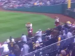 - ^ "Teddy Roosevelt leveled by racing pierogie at Pittsburgh's PNC Park". August 2, 2009. Archived from the original on May 9, 2021. Retrieved December 7, 2021.