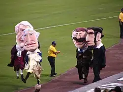 Teddy mania reached a fever pitch during a June 2008 series against the Baltimore Orioles, part of the annual Beltway Series between the teams, when Teddy was tripped short of the finish line by the Orioles mascot "The Bird." On June 28, 2008, the Presidents Race was suspended for a day as Teddy won a one-on-one "grudge match" race against The Bird, giving Teddy his first victory. However, it was announced that the "unsanctioned" race would not be recognized in the standings by "The Presidents Racing Association of America."[13] The next day, Teddy refused to race with the other presidents, choosing to help the Nationals grounds crew instead.[14] The interleague rivalry between Teddy and the Orioles Bird extended into 2009, when the mascots tackled each other in back-to-back games at Nationals Park.[15]