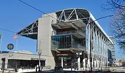 In 1956, the Portland Beavers moved to the stadium after their original field, Vaughn Street Park, was condemned. After two attempts for a new domed stadium in Delta Park were defeated by voters in 1964,[16][17] the city looked to purchase what was already in existence. In 1966, the Multnomah Athletic Club sold the stadium for $2.1 million to the city of Portland, which renamed it "Civic Stadium".[12][15][18] The city government rejected several proposed renovation plans, including construction of a 57,000-seat domed stadium,[19] and adding a second deck supported by helium-filled balloons.[20] Prior to the 2011 MLS season, the stadium was renamed "Jeld-Wen Field" from "PGE Park", in a partnership with Klamath Falls-based company Jeld-Wen. Jeld-Wen is a manufacturer of windows and doors, leading to the stadium's nickname, "The House of Pane." In 2014, the stadium was renamed "Providence Park" after a partnership with Providence Health & Services was announced.[8]