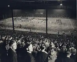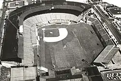 Since 1893, the site had been home to Multnomah Field, which consisted of sports fields with various grandstands.[12][13] Before the MAC developed the site as an athletic field, it was a large Chinese vegetable garden, supplying produce to much of Portland.[14] In 1912, the distinctive Multnomah Athletic Club, which currently borders the south end of the stadium, was constructed. The overarching stadium was completed in 1926 for $502,000, and named "Multnomah Civic Stadium" after the club.[15]