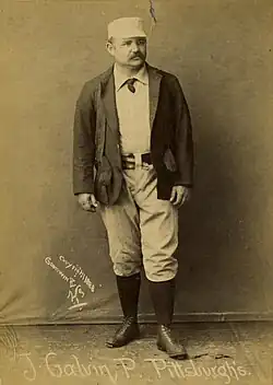 Galvin was traded to the Pittsburgh Alleghenys midseason in 1885.[3] He played for the Allegheny club from 1885 to 1889, pitching over 300 innings each year. He jumped to the Pittsburgh Burghers of the short-lived Players' League before the 1890 season and then returned to the Alleghenys (now named the "Pirates") after the season. On June 14, 1892, Galvin was traded to the St. Louis Browns.[4] He retired after the 1892 season, though he made a brief return to Buffalo (by this time a minor league franchise) in 1894.