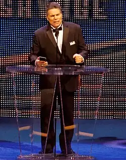 Savage was described by sportswriter Bill Simmons as "one of the greatest pro wrestlers who ever lived" – a statement echoed by multiple industry performers.[7] He was recognizable by wrestling fans for his distinctively flamboyant ring attire and raspy voice, intensity exhibited in and out of the ring, use of the finale from "Pomp and Circumstance March no. 1" by Elgar as his entrance music, and signature catchphrase, "Oooh yeah!"[1][2][8] For most of his tenures in the WWF and WCW, Savage was managed by his real-life wife, Miss Elizabeth.